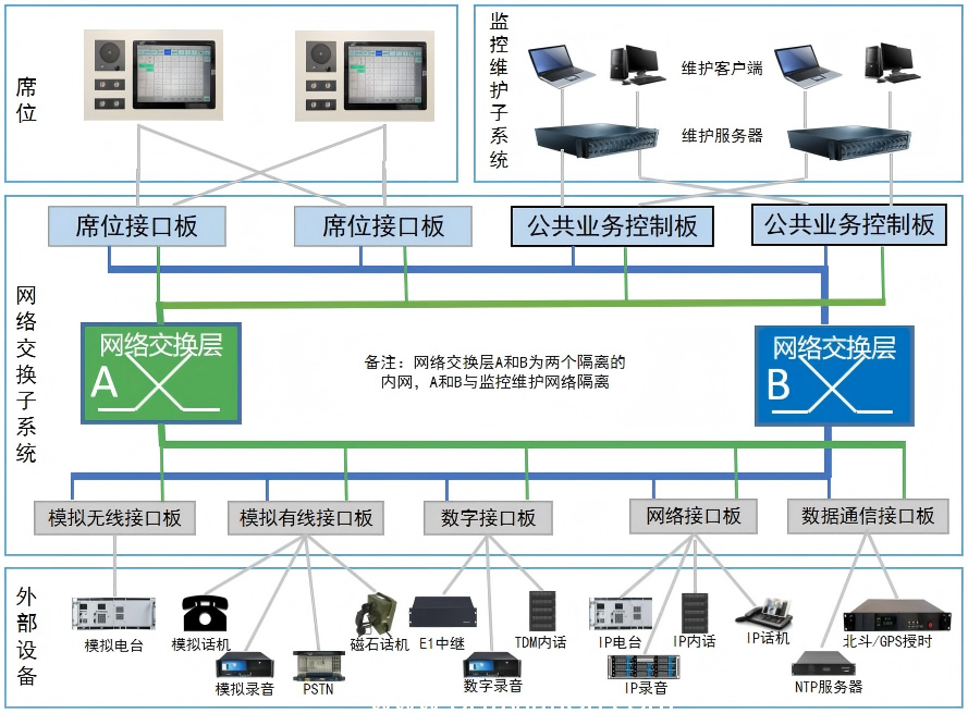 2、音质良好:席位终端,电话板(CO),中继板(PSTN)等板件支持回声消除算法,有效减少和消除空间回声和线路回声。使用了EQ均衡处理,确保管制员话音柔美,人声更清晰饱满。